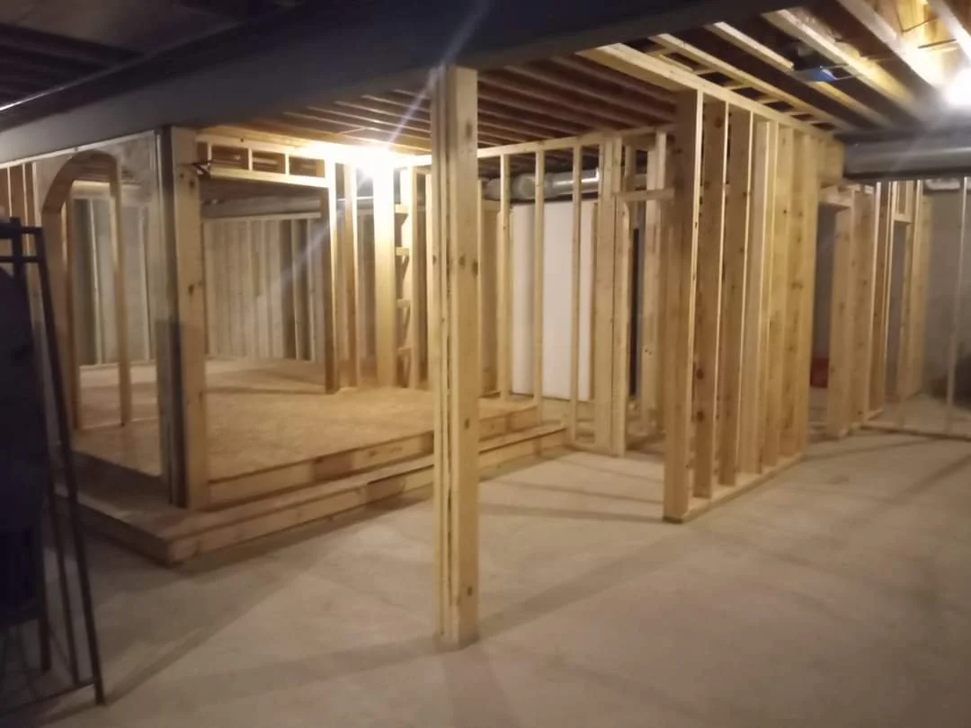 Our rough framing services are available in both wood and metal stud options, ensuring that your new space is built to last. Our experienced craftsmen will ensure that your basement walls are properly supported and that your theater room platform is perfectly level and stable.